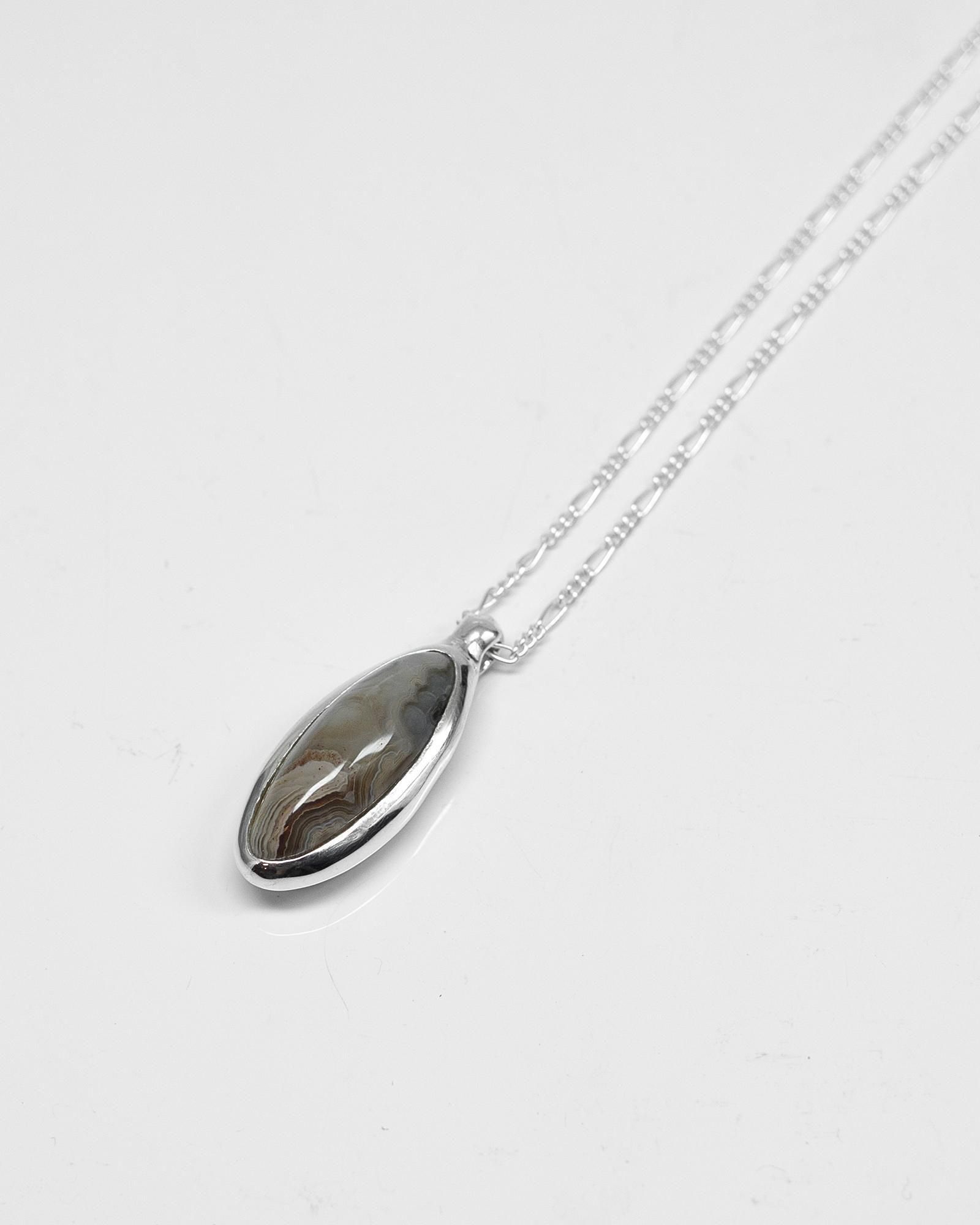 Aquaをベースデザインにピクチャージャスパーをセットしたシルバーネックレス。